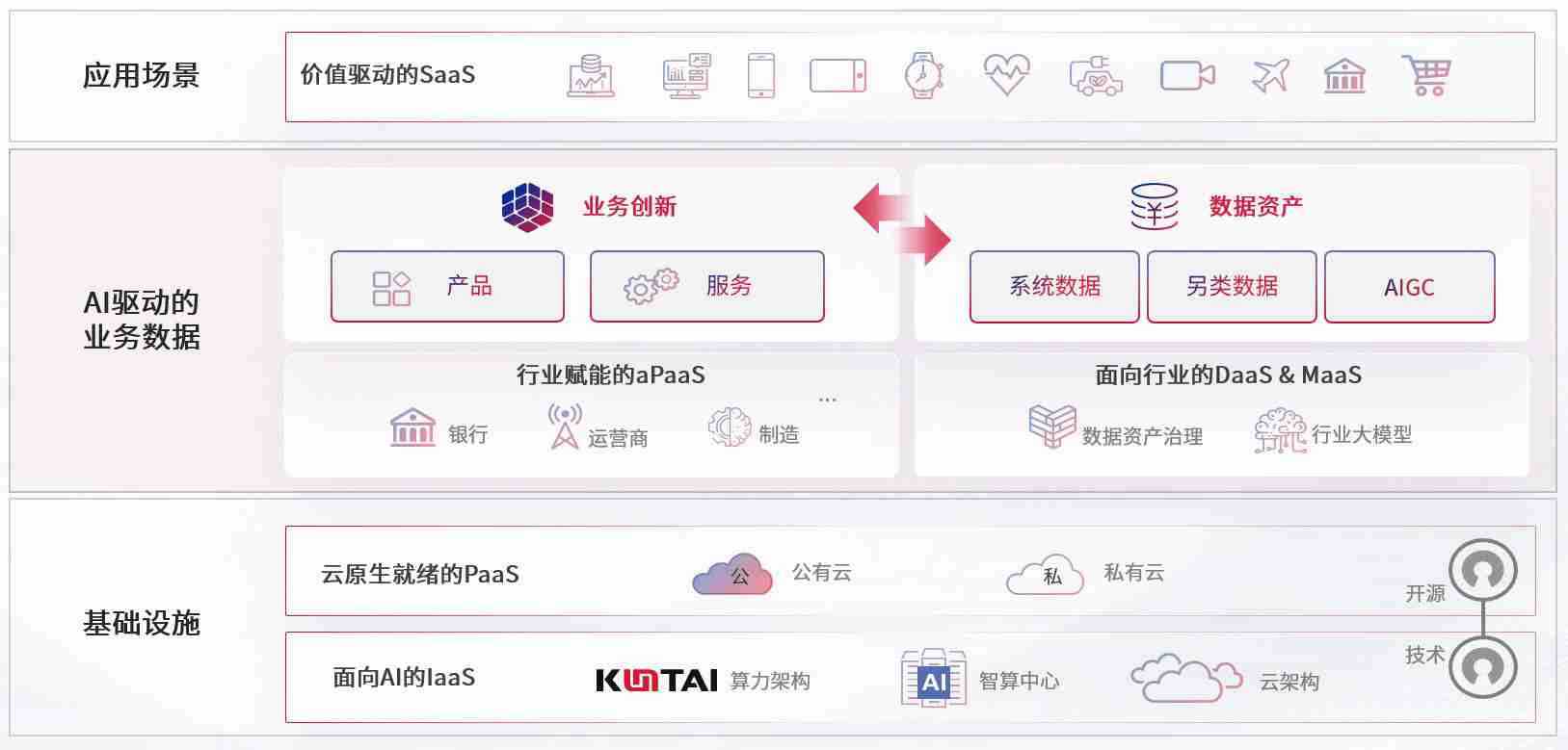 数字时代,,,围绕企业数字化转型的关键要素,,欧赔数码开创性的提出数云融合战略和技术体系框架,,,着力在云原生、、数字原生、、AI原生和信创产业上架构产品和服务能力,,,,为处在不同数字化转型阶段的快消零售、、、、汽车、、金融、、、、医疗、、、政企、、教育、、、、运营商等行业客户提供泛在的敏捷IT能力和融合的数据驱动能力,,,构建跨界融合创新的数字业务场景和新业务模式,,,助力企业级客户建立面向未来的核心能力和竞争优势,,全面推动社会的数字化、、智能化转型升级。。。。